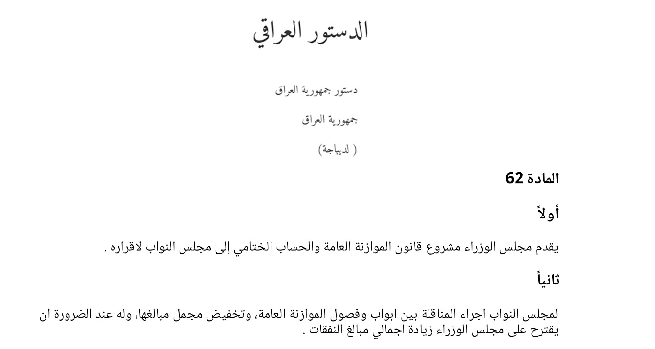 بەگوێرەی مادەی (62)ی دەستوری عێراق: