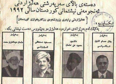 كارتی دهنگدانی كۆمسیۆنی 1992ی كوردستان بۆ ههڵبژاردنی (رابهری بزوتنهوهی رزگاریخوازی كوردستان)