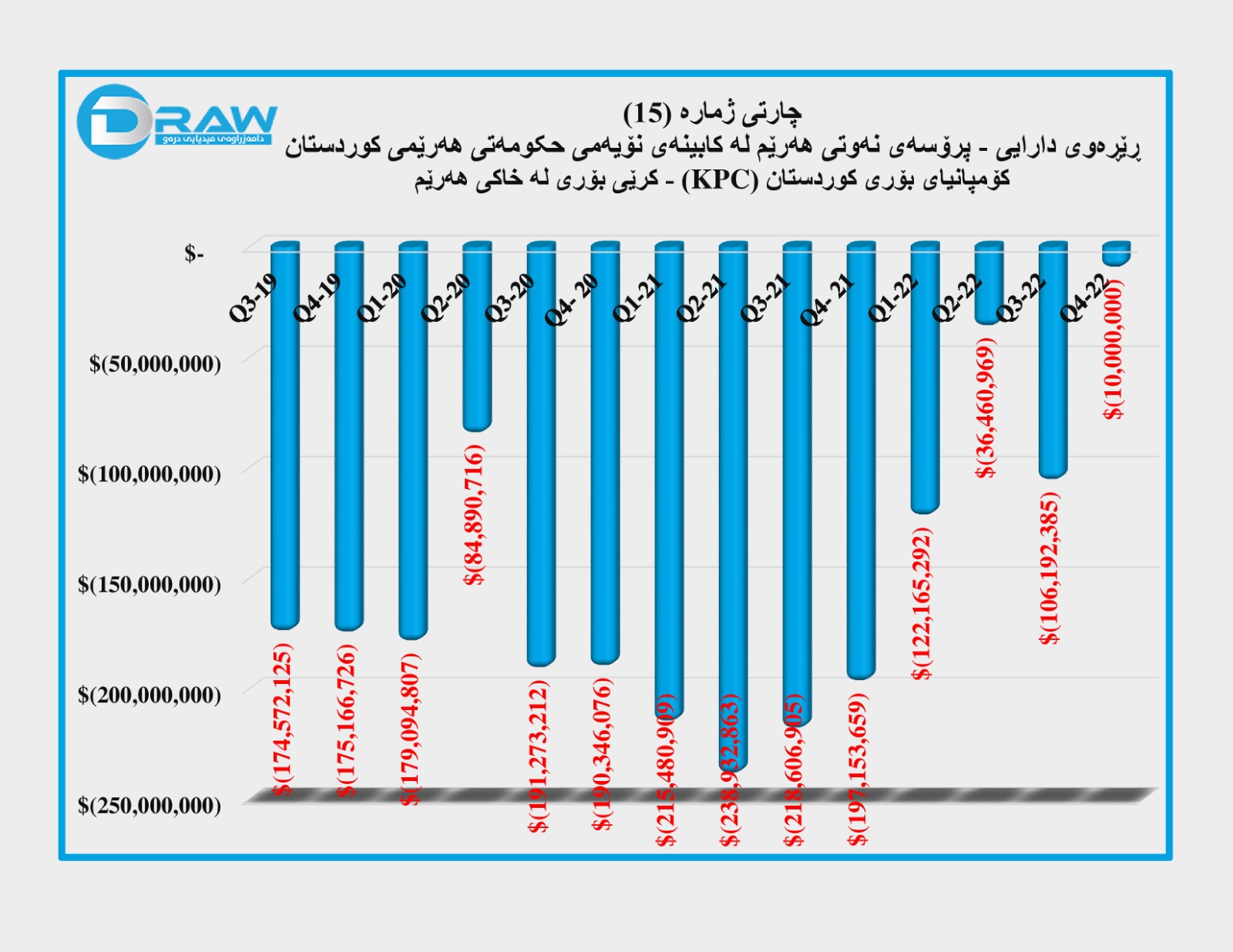 بەپێی ڕاپۆرتەکانی دیلۆیت حکومەتی هەرێمی کوردستان بۆ گواستنەوەی نەوتەکەی لە نێو خاکی هەرێمدا بە درێژایی تەمەنی کابینەی نۆیەم، بەکۆی گشتی بڕی (2 ملیار و 140 ملیۆن و 336 هەزار و 466) دۆلاری دراوە بە کۆمپانیای بۆری کوردستان (KPC). گەورەترین پارەدانیش بۆ ئەم مەبەستە لە چارەکی دووەمی (2021)دا بۆ ئەم بوارە بریتی بووە لە بڕی (238 ملیۆن و 932 هەزار و 863) دۆلار، کەمترین خەرجی گواستنەوە بۆ کۆمپانیای بۆری کوردستان لە چارەکی چوارەمی (2022)دا تۆمار کراوە بە بڕی (100 ملیۆن) دۆلار. بۆ وردەکاری بڕوانە (خشتەی ژمارە (2) و چارتی ژمارە (15)).