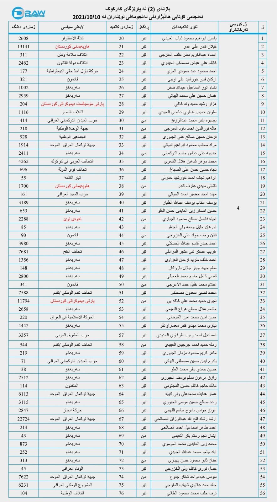 - کۆمسیۆنی سەربەخۆی هەڵبژاردنەکانی عێراق، ئەنجامی کۆتایی هەڵبژاردنی ئەنجومەنی نوێنەرانی عێراق لە 10/10/2021.