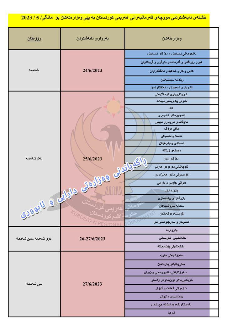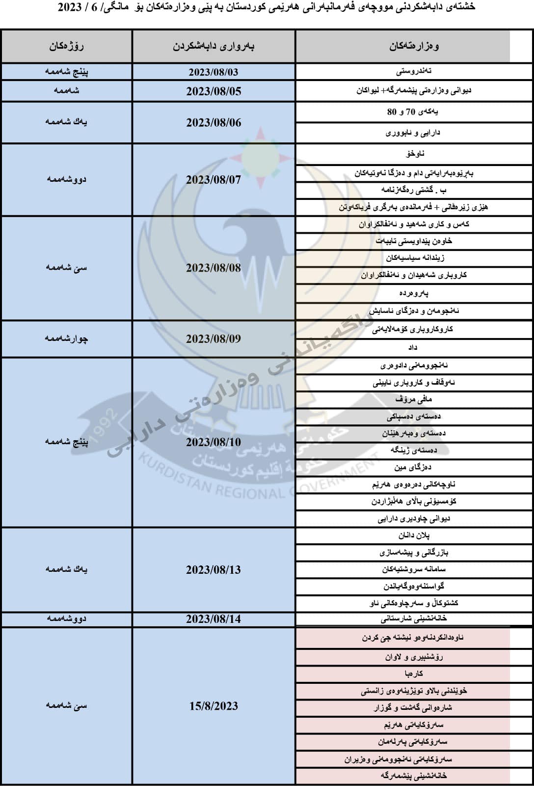 • لەرۆژی 3ی ئاب موچەی مانگی شەشی دابەشكردووە