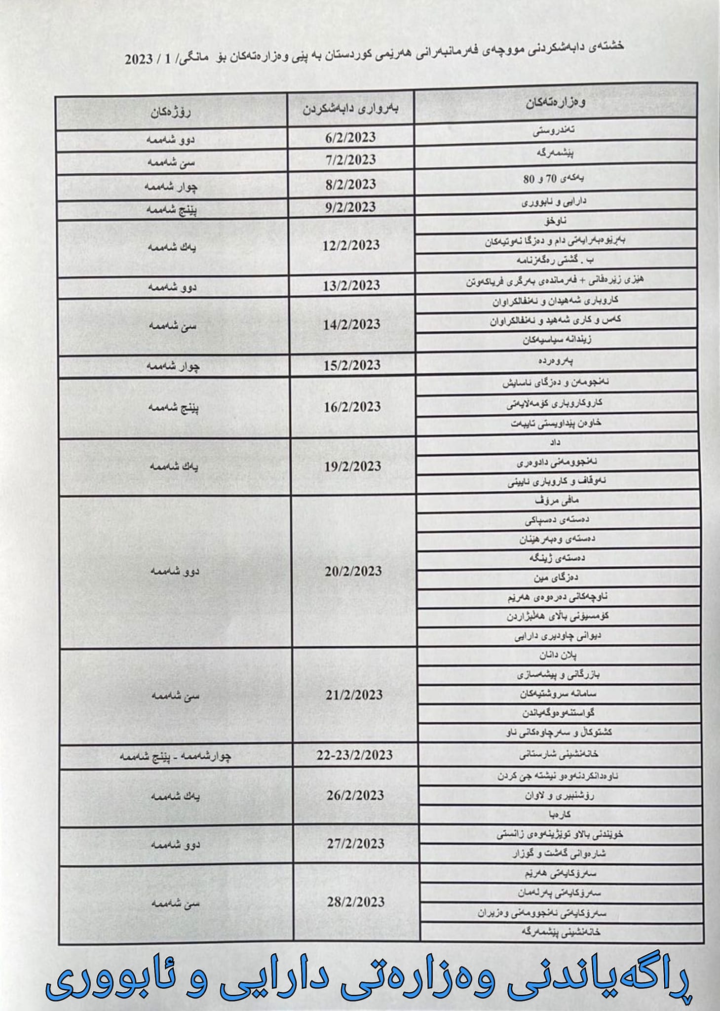 • لە رۆژی 6ی شوبات موچەی مانگی یەكی دابەشكردووە