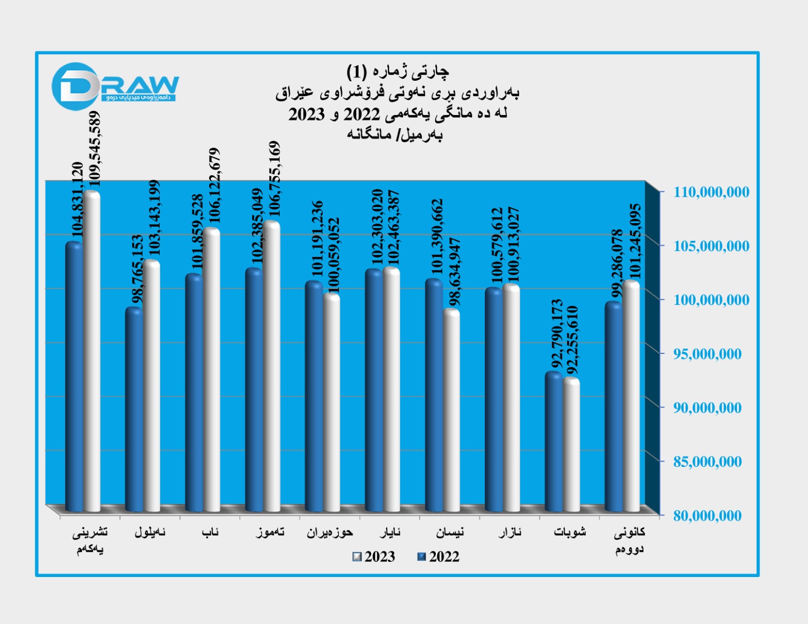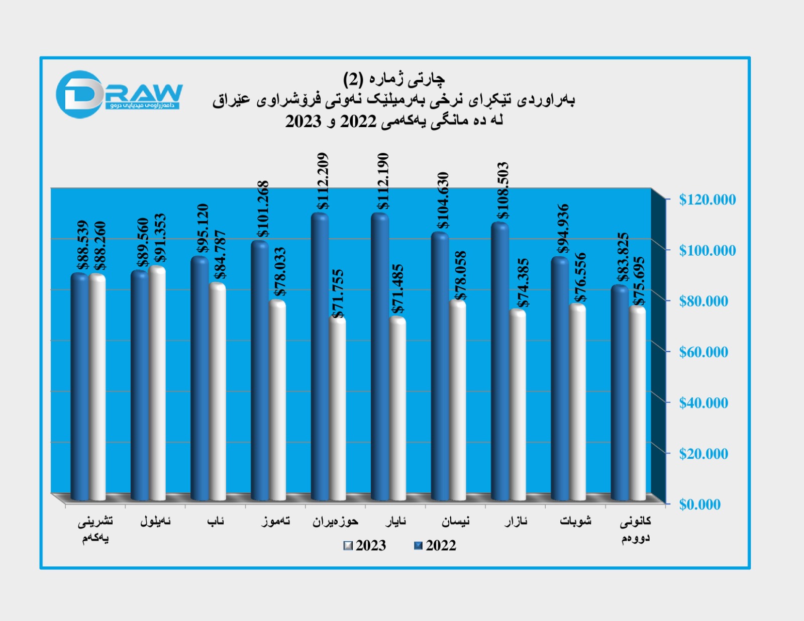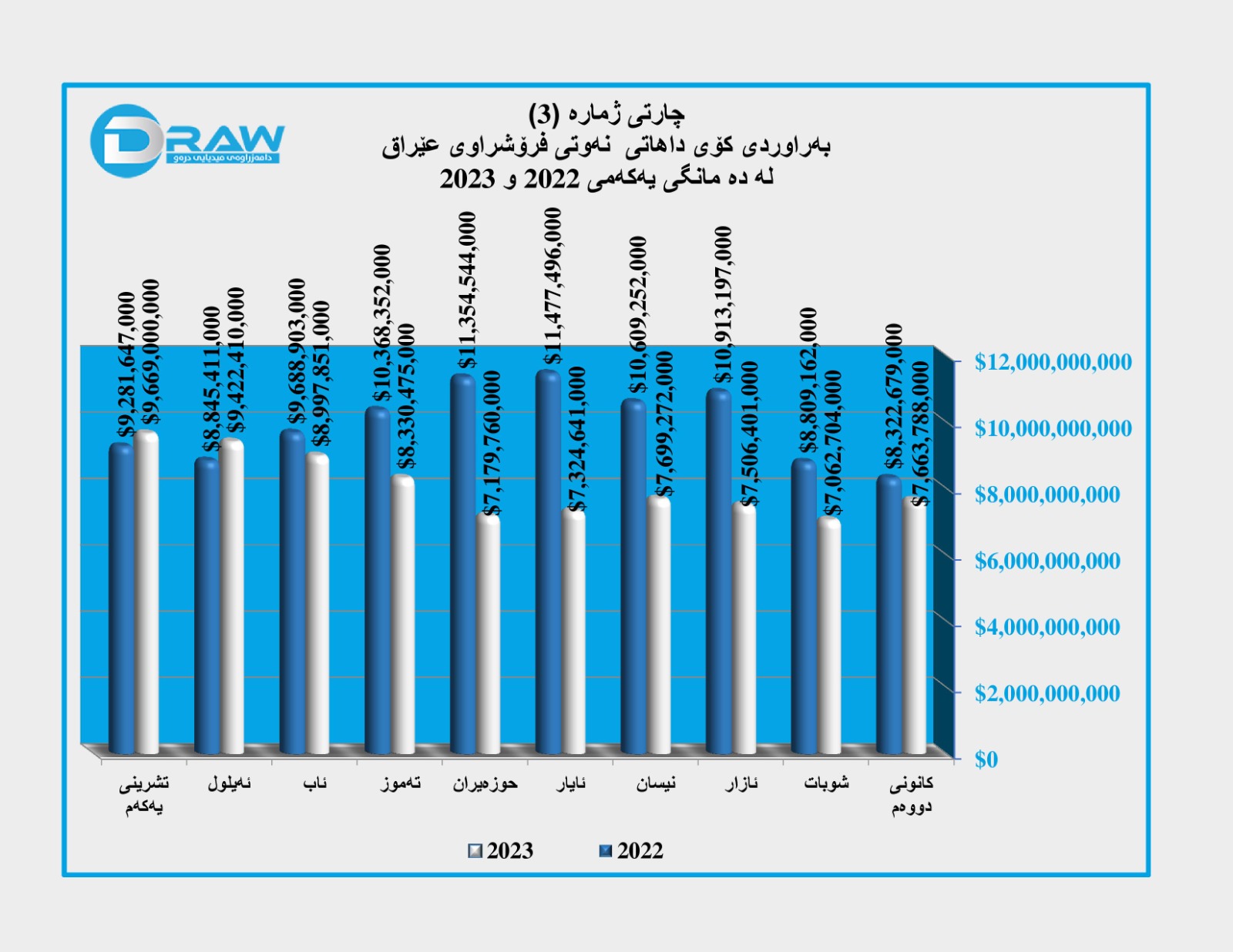 ? لە سەرەتای ساڵەوە تا کۆتایی تشرینی یەکەمی (2023)، بە تێکڕا هەر بەرمیلێکی نەوتی عێراق بە (79 دۆلار و 3 سەنت) فرۆشراوە. لە کاتێکدا لە دە مانگی یەکەمی ساڵی پار بە تێکڕا بەرمیلێک نەوت درابوو بە (99 دۆلار و 7 سەنت).