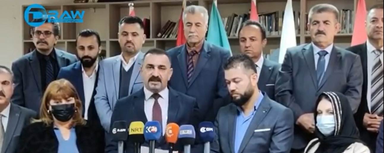 سهركردایهتی كاتیی هاوپهیمانی نیشتمانی لهكاتی خوێندنهوهی راگهیهندراوهكهیان له 9ی كانونی یهكهمی 2022