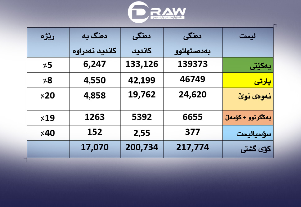 • لیستی نەوەی نوێ (24,620) دەنگی بەدەستهێناوە