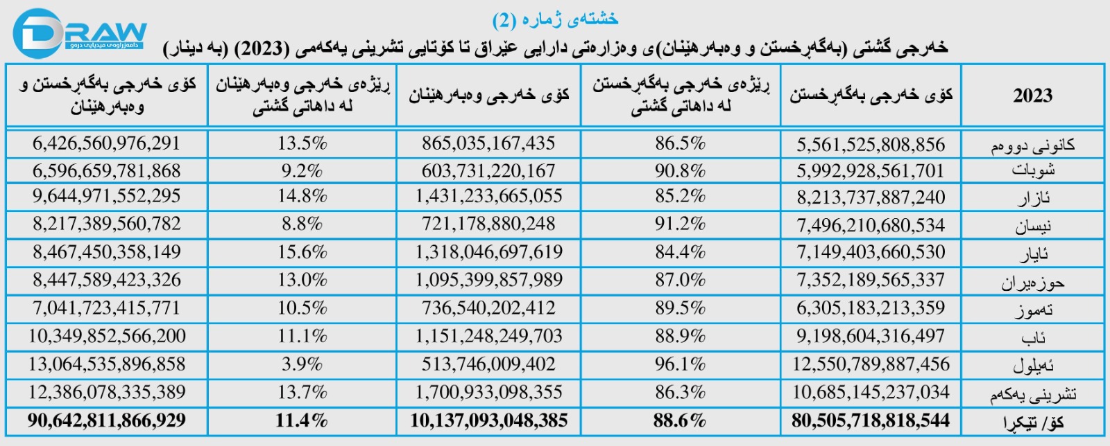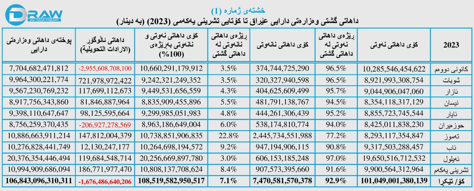 رۆژی (14ی کانونی یەکەمی 2023) وەزارەتی دارایی عێراق داهات و خەرجی خۆی تا کۆتایی مانگی تشرینی یەکەمی ئەمساڵ بڵاوکردەوە، بەپێی ڕاپۆرتەکە؛