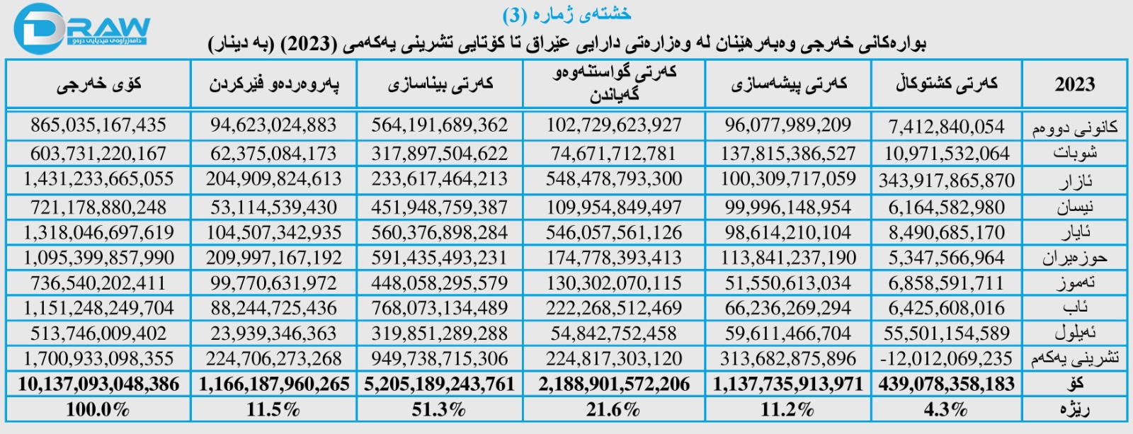 بۆ وردەکاری خەرجییەکانی وەبەرهێنان لە کەرتە جیاوازەکان لە ماوەی دە مانگی یەکەمی ساڵی (2023) بڕوانە (خشتەی ژمارە (3)).