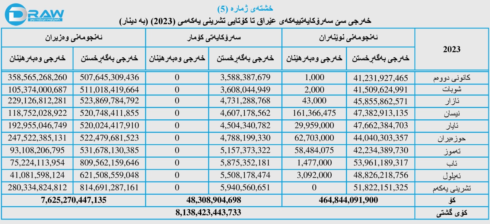 بۆ وردەکاری خەرجی سێ سەرۆکایەتییەکە لە دە مانگی یەکەمی ساڵی (2023) بڕوانە (خشتەی ژمارە (5)).