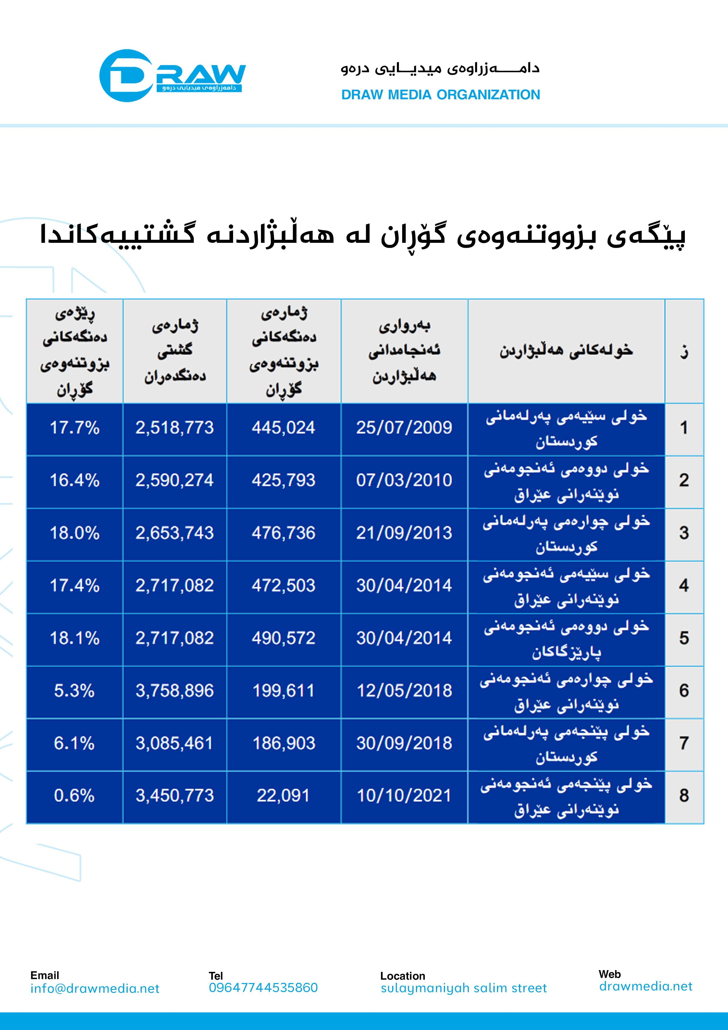 بزووتنەوەی گۆڕان و هەڵبژاردن بە ژمارە