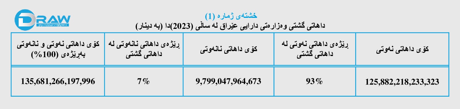 1. داهاتی گشتی وەزارەتی دارایی عێراق لە ساڵی (2023)دا