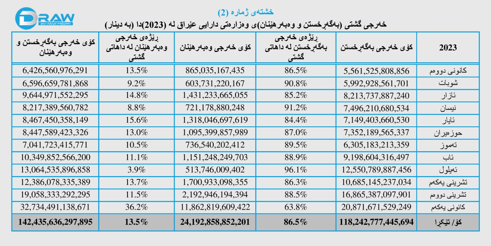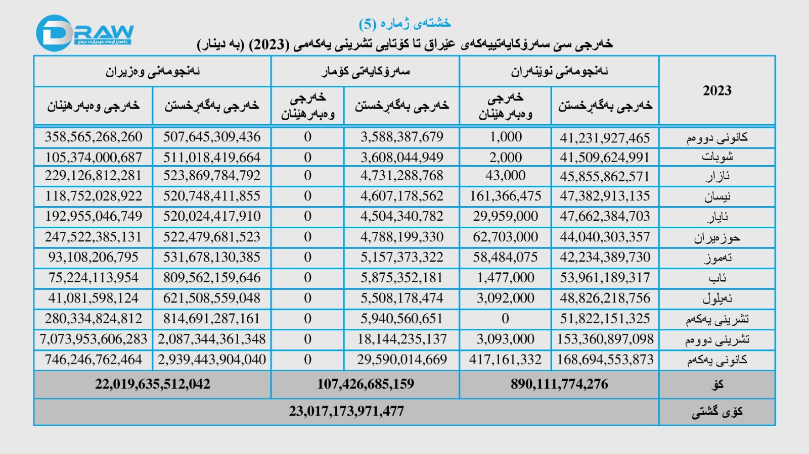 رۆژی (24ی شوباتی 2024) وەزارەتی دارایی عێراق داهات و خەرجی خۆی تا کۆتایی ساڵی (2023) بڵاوکردەوە، بەپێی ڕاپۆرتەکە؛