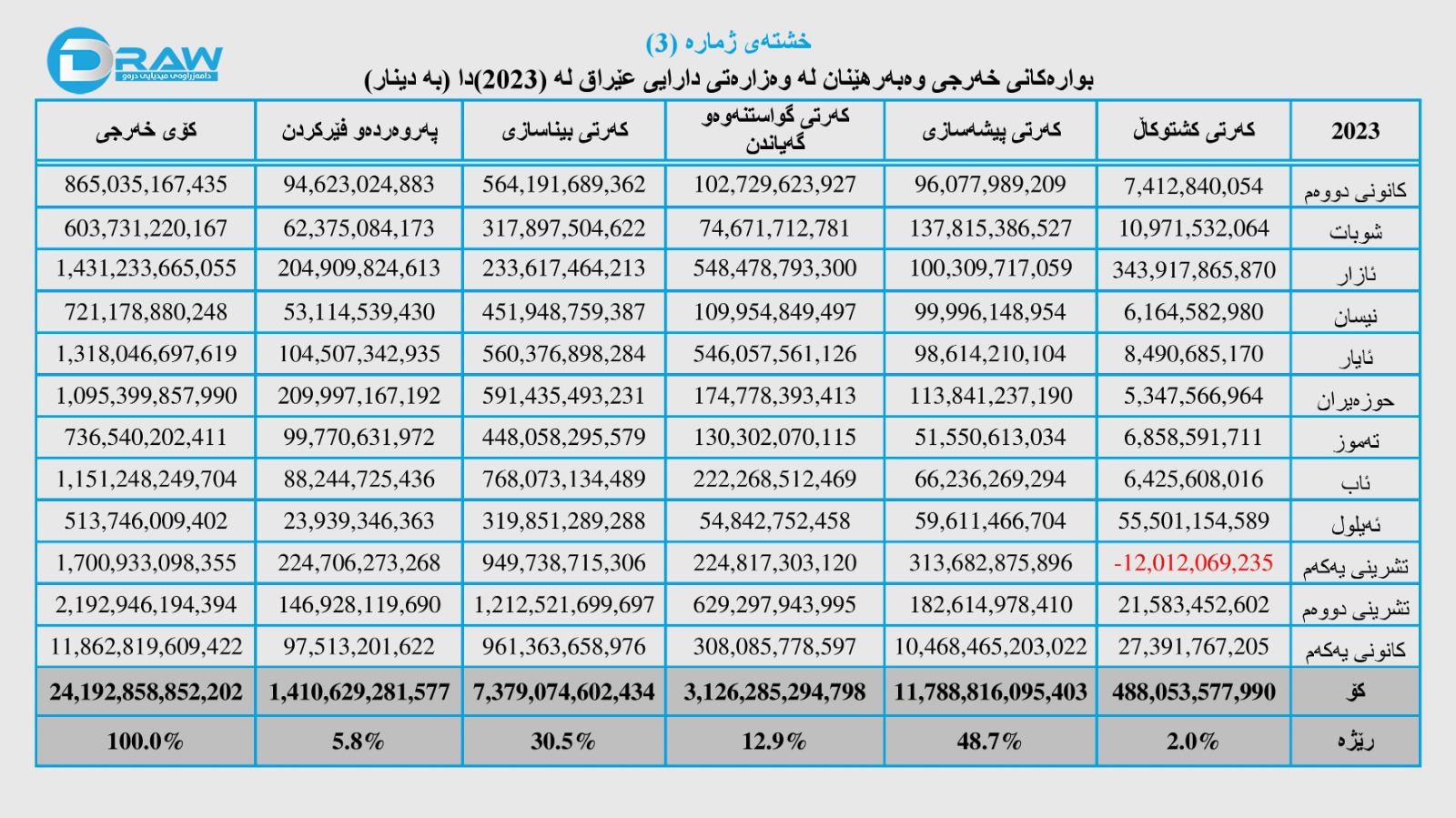 بۆ وردەکاری خەرجییەکانی وەبەرهێنان لە کەرتە جیاوازەکان لە ماوەی ساڵی (2023)دا بڕوانە (خشتەی ژمارە (3)).