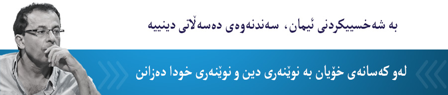 لەم دوو دەیەی دواییدا بزاوتی دینیی لە وڵاتی ئێمەدا دروستبووە کە دین لە کێشەکانی دونیای ئەمڕۆکە و لە دۆخی مرۆڤی ئەم سەردەمە دادەبڕن. دینداریی دەگەرێننەوە ناو ئەو چوارچێوانەی سەدان ساڵ لەمەوبەر دروستکراون. بە زمان و عەقڵیەت و خەیاڵێکیش باس لە دین دەکەن و لە دینداریی تێدەگەن، کەسەر بەو رۆژگارە کۆن و تێپەڕانەیە. لەڕاستیدا ھیچ شتێکی ئەو ڕوانیانە سەر بەم سەردەم و رۆژگارە نییە، تەنھا لەوەدا نەبێت کە بازارێکی گەورەیان بۆ دین دروستکردوە و ھەرلایەنێک کاڵا دنییەکەی خۆی لەو بازاڕەدا دەفرۆشێت. ئیمان لێرەدا سەر بە تاکەکەس و دونیا رۆحیی و دەروەنییە ناوەکییەکەی نییە، بەڵکو کاڵایەکە چاوساغێکی دینیی پێمانی دەفرۆشێت. ئەوەی پێماندەڵێت ئیمانی راستەقینە چییە، خودی ئیماندرەکە خۆی نییە کە زۆرجار تەنانەت زمانە ئینسناییە تایبەتەکەی خۆیشی ناتوانێت ئیمانداربوونەکەی بەرجەستەبکات. ئەوەی دەستنیشانی ماھیەت و جەوھەری ئیمان دەکات، چاوساغێکی دینیە، زۆرجار لەبەردەم میکرۆفۆن و کامێراکاندا، بە ئیماندارن دەڵێت ئیمانی ڕاستەقینە چییە. باس لەو کتێبە کۆنانە دەکات کە سەدان ساڵ لەمەوبەر و لە جیھانێکدا تەواو جیاوازدا بۆ مرۆڤێک نووسراون سەر بەم سەردەم و ڕۆژگارە نییە.