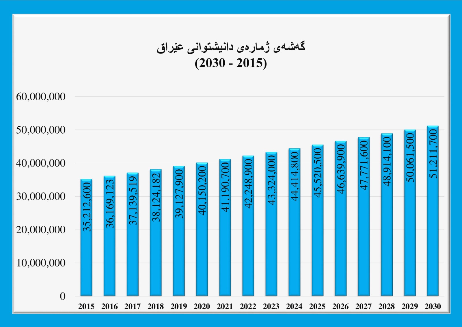 گەشەی دانیشتوانی عێراق (2015 - 2030)