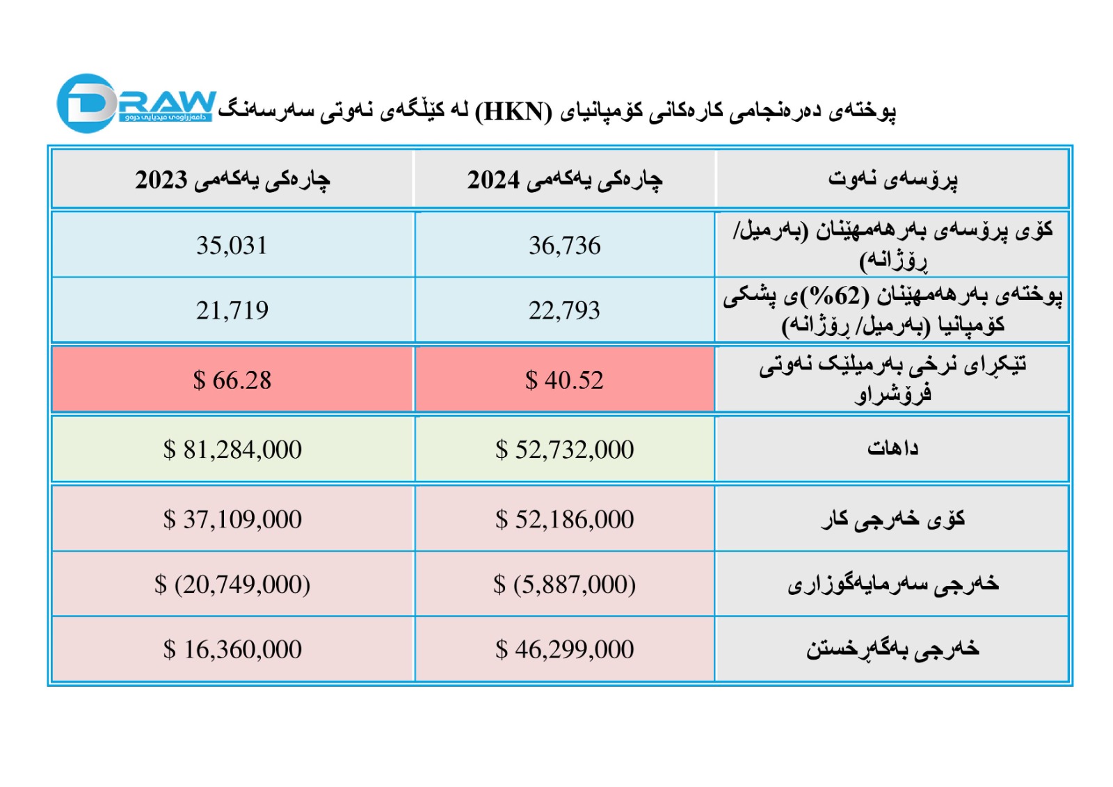 ? داهاتی کۆمپانیای (HKN Energy) بۆ چارەکی یەکەمی 2024 بەڕێژەی (35.1%) کەمیکردووە بە بەراورد بە چارەکی یەکەمی 2023.