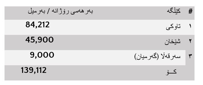 تەنها بەرهەمی ئەم سێ کێڵگەیە دەکاتە ١٣٩٫١١٢ بەرمیلە.