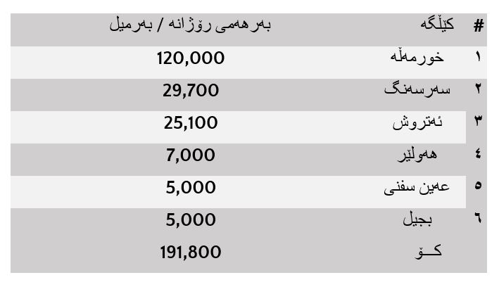 هۆکارەکەی زۆر ئاسانە سەرەتا با سیرێکیبەرهەمی یەک بەیەک ئەو کێڵگانە بکەین کە بەیەکەوە کۆی بەرهەمیان رۆژانە زیاد لە ١٩١ هەزار بەرمیلە بەم شێوەیە:
