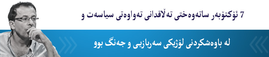 ٧ ئۆکتۆبەر ساتەوەختی تەڵاقدانی تەواوەتی سیاسەت و لە باوەشکردنی لۆژیکی سەربازیی و جەنگ بوو. ئەمەش لەناو ھاوکێشەیەکی سەربازیی تەواو ناھاوسەنگدا. لانی ھەرەکەمی ئەوەی لەسەر ئەم لۆژیکە سەربازییە بیڵێین ئەوەیە کە لۆژیکێکی نەزۆکە، جگە لە کارەساتی گەورە ھیچیتری لێ سەوزنابێت. ئەم ڕاستییە سادەیە بۆ دۆخی ئێمە وەک میلەتێکی چەوساوەش تەواو ڕاستە.