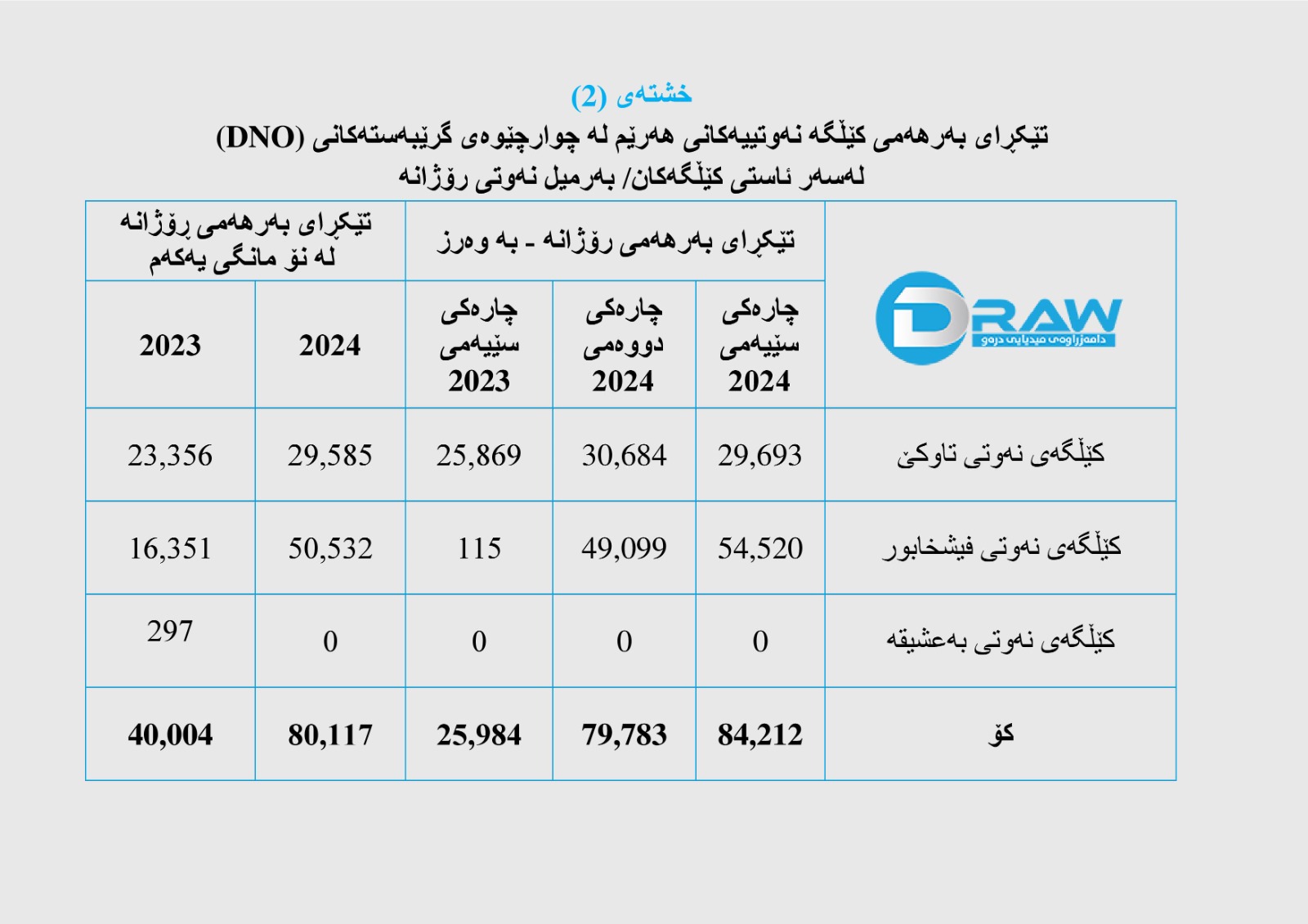 بەرهەم و داهاتی کۆمپانیای (DNO) لە چارەکی سێیەمی ئەمساڵ