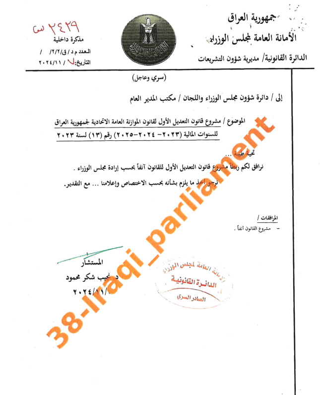 ئەنجومەنی نوێنەرانی عێراق ئەمڕۆ خوێندنەوەی یەكەمی كرد بۆ هەمواری یەكەمی یاسای بودجەی سێ ساڵە (2023-2024-2025). هەموارەكە لەلایەن ئەنجومەنی وەزیرانی عێراقەوە رەوانە كراوە بۆ پەرلەمان، تێیدا تەنیا یەك بڕگە هەموار كراوە كە پەیوەندی بە نەوتی هەرێمی كوردستانەوە هەیە. ئەنجومەنی نوێنەران دەقی پرۆژەی هەموارەكەی بڵاوكردەوە، كە تەنیا بۆ (بڕگەی ج/ دووەم)ی ماددەی 12ی یاسای بودجەیە.