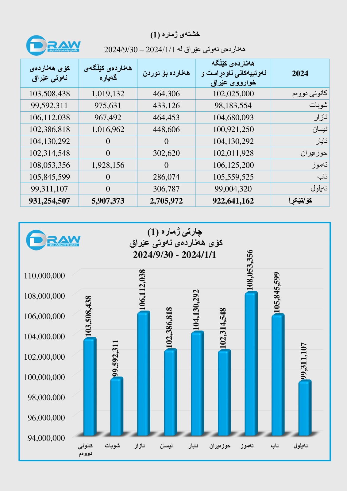 وەزارەتی نەوتی عێراق لە نۆ مانگی یەکەمی ساڵی (2024)دا؛