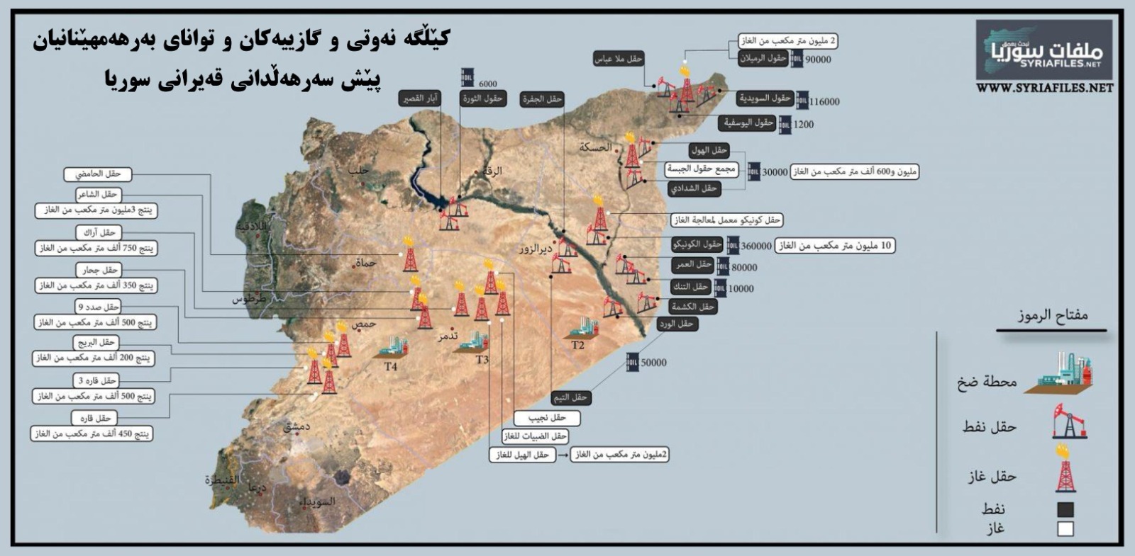 دابەشبوونی کێڵگەکە نەوتی و غازییەکانی سوریا
