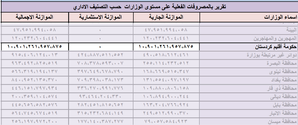 وەزارەتی دارایی عێراق: (10 ترلیۆن) دینارمان بۆ هەرێم نێردراوە