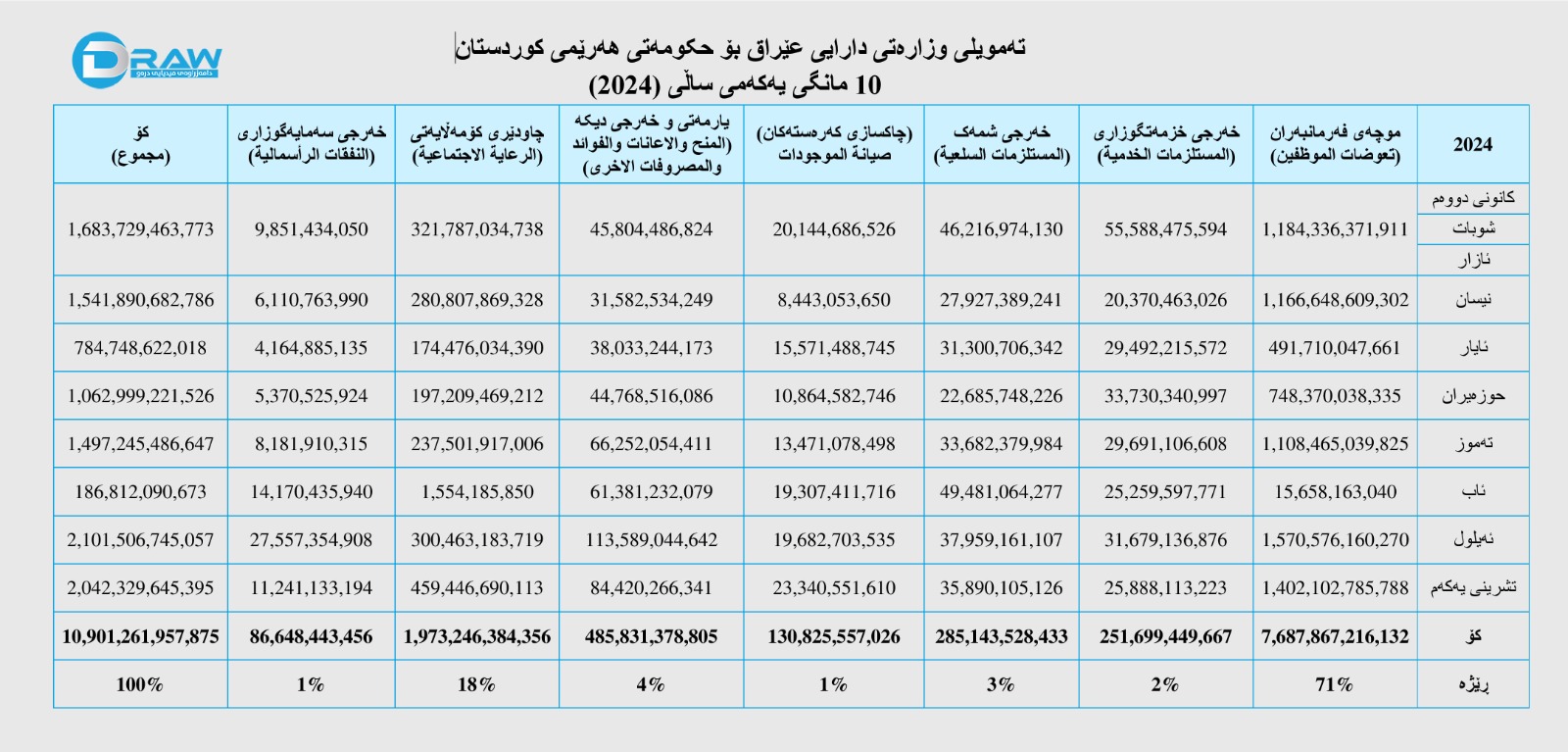 تەمویلی وزارەتی دارایی عێراق بۆ حکومەتی هەرێمی کوردستان لە (10 مانگی یەکەمی 2024)