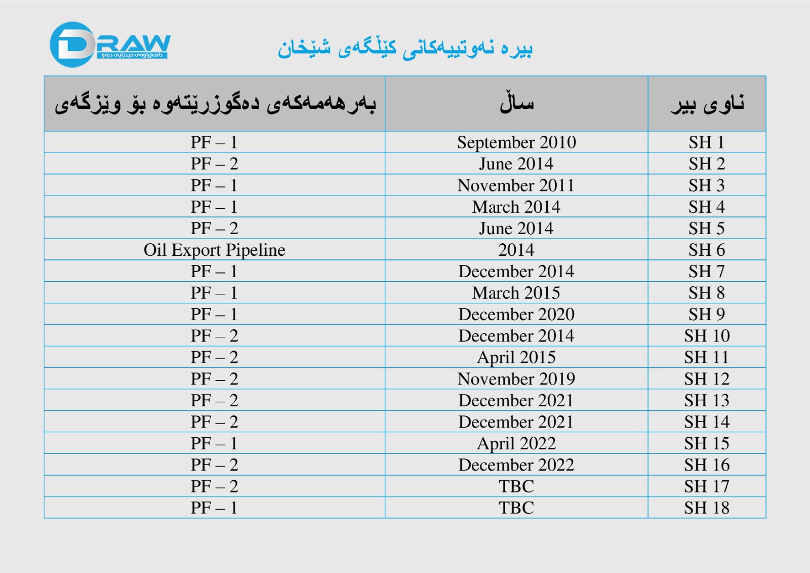 • 2016: 35 هەزار بەرمیلی رۆژانە