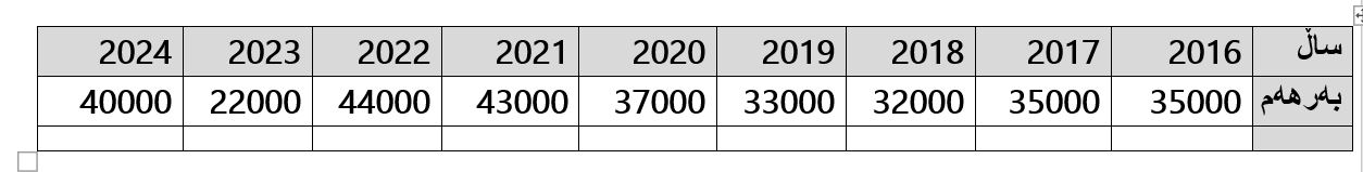 بەرهەمی كێڵگەی شێخان لە ماوەی ساڵانی 2016 بۆ 2024: