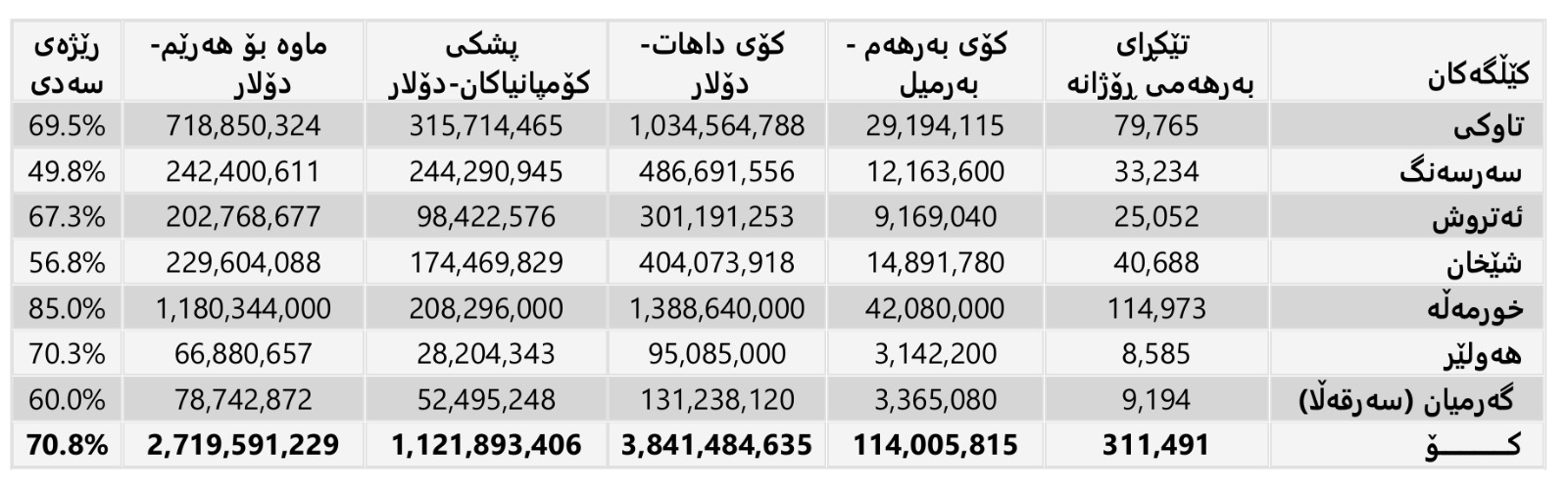 # داهاتی فرۆشی نەوتی هەرێم بریتی بووە لە (3 ملیار و 841 ملیۆن و 484 هەزار و 635) دۆلار.