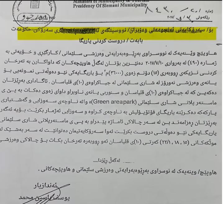 یاریگای نێودەوڵەتی نەورۆز كە ماوەیەكی بووەتە جێگای سەرنجی وەرزشوانانی هەرێمی كوردستان و عێراق، سەرۆكی شارەوانی سلێمانی دەڵێت شوێنی یاریگای نەورۆز گەشتیارییە نەك یاریگا، لاهور شێخ جەنگیش دەڵێت بە فەرمانی قوباد تاڵەبانی ئەو زەویە تەرخانكراوە و بەڵگەنامەكان بڵاو دەكەینەوە.