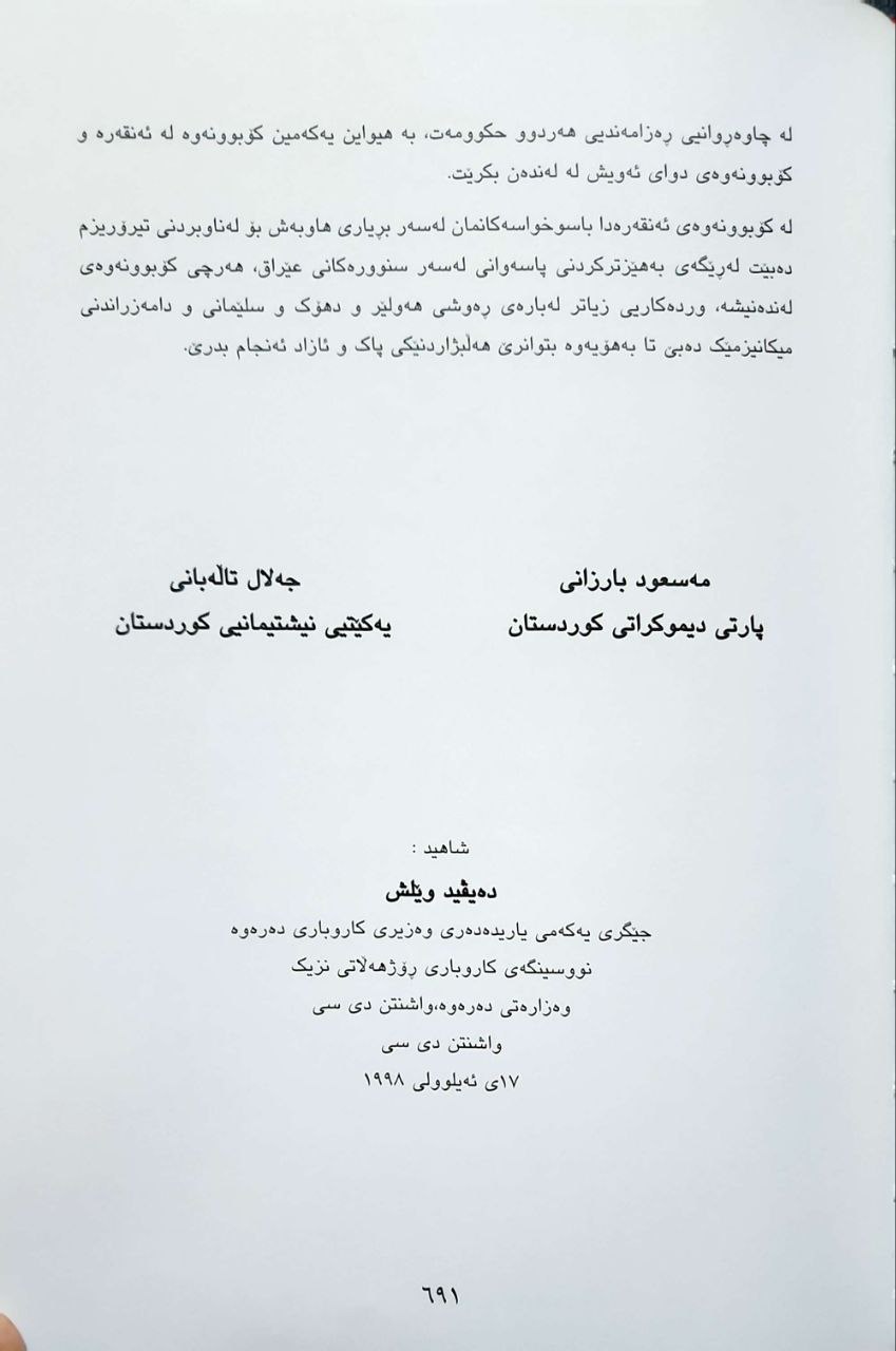 دەقی هاوپێچی رێككەوتنی واشنتۆنی نێوان تاڵەبانی و بارزانی