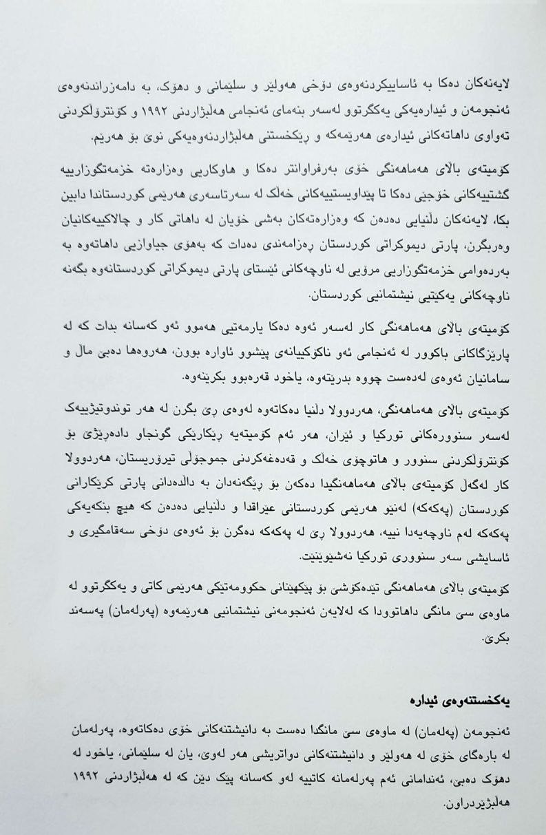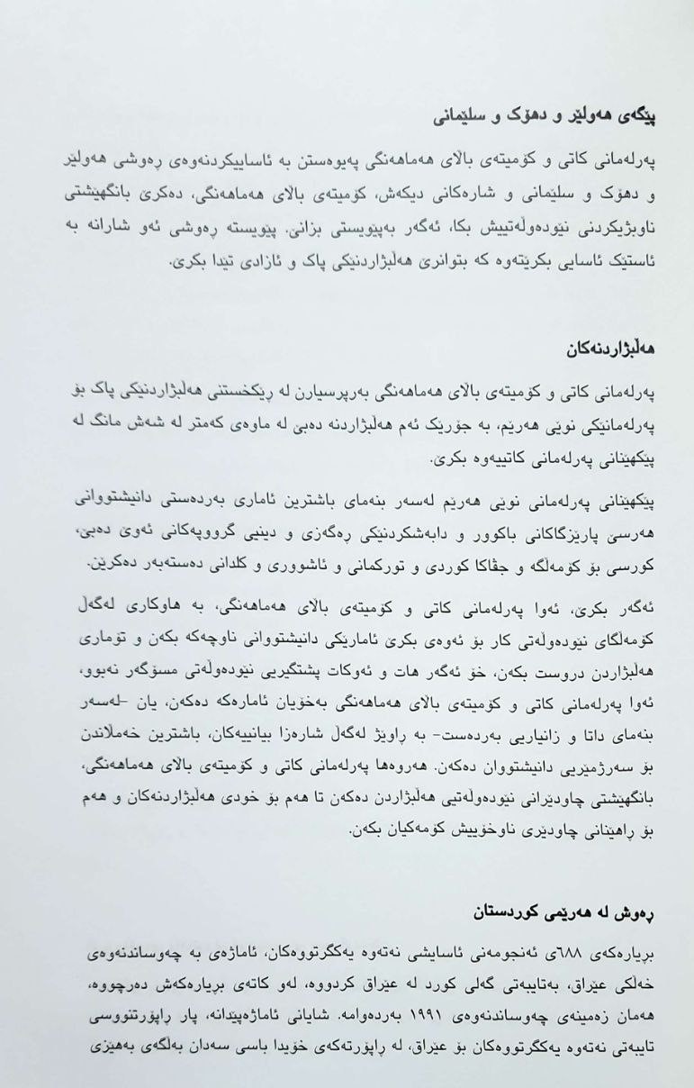 - دانیشتنی پەرلەمان بەپێی ئەنجامەكانی هەڵبژاردنی 1992 بێت.