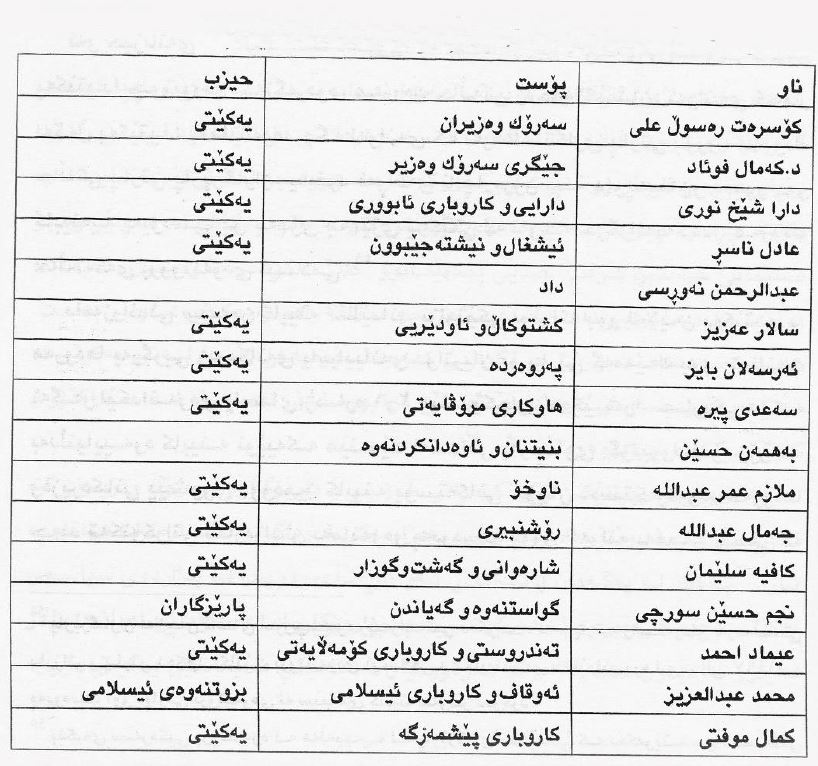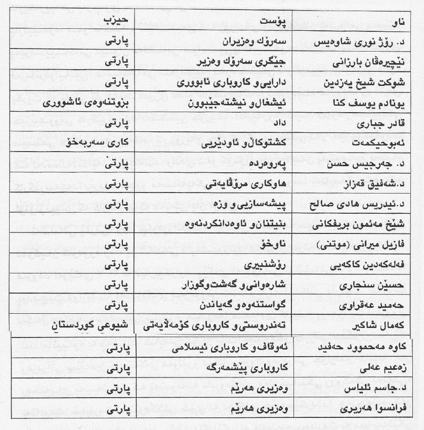 - كابینەی یەكەم و دووەمی حكومەتی هەرێمی كوردستان