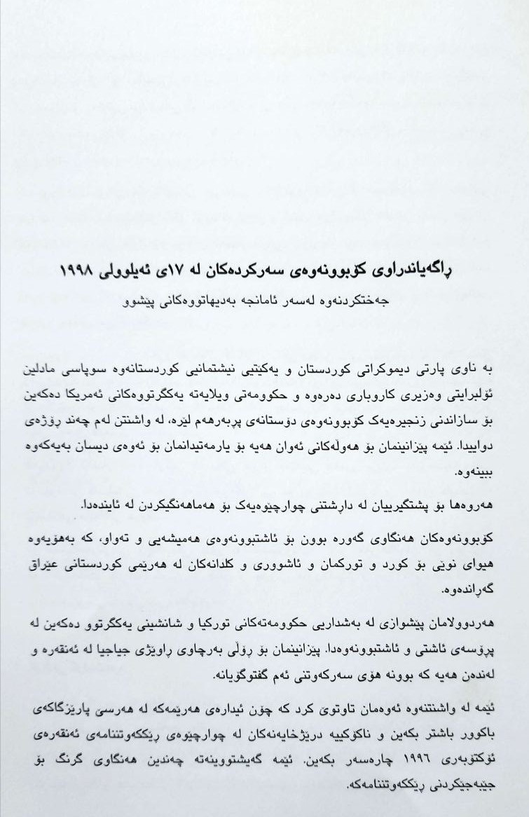 دەقی راگەیەندراوی رێككەوتنی واشنتۆنی ساڵی 1998 بەشێوەی بارزانی بڵاویكردوەتەوە