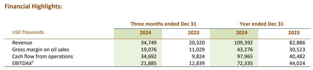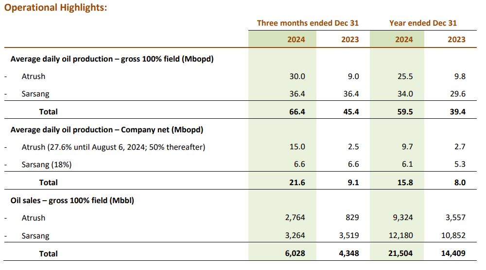 ? بەگوێرەی ڕاگەیەندراوی کۆمپانیای شاماران پترۆلیۆمی کەنەدی بۆ چارەکی کۆتایی و تەواوی ساڵی 2024؛