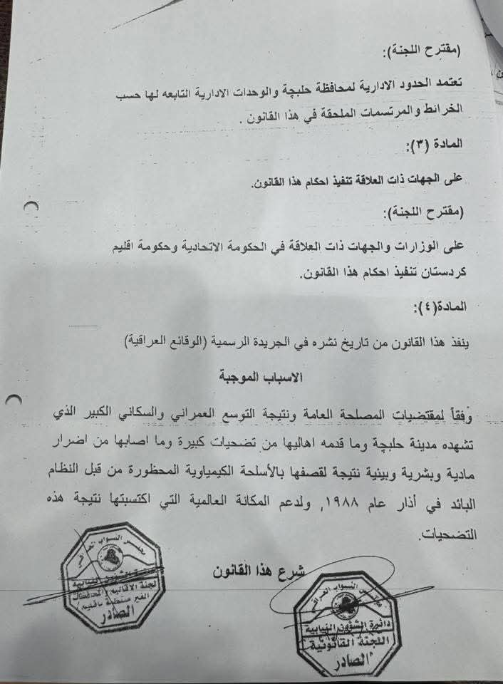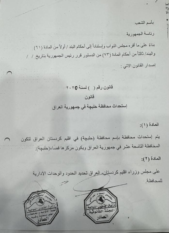 ئەنجومەنی نوێنەرانی عێراق پرۆژەیاسای بە پارێزگابوونی هەڵەبەجەی پەسەندكردو هەڵەبجە بووە (4)یەمین پارێزگای هەرێم و (19)یمین پارێزگای عێراق