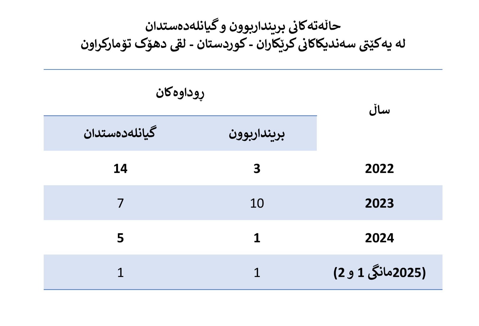 هۆگر ڕەزوان میرزا، لێپرسراوی سەندیکای کرێکاران لە کوردستان- لقی زاخۆ، دووپاتی دەکاتەوە، کە زۆرینەی ئەو کرێکارانەی لە زاخۆ برینداربوون یان گیانیان لەدەستداوە، ئەندامی سەندیکا بوون. ئاماژە بەوەش دەکات، لە ساڵی ٢٠٢٣دا یەک حاڵەتی مردن و یەک بریندار تۆمارکراوە، لەکاتێکدا لە ساڵی ٢٠٢٤دا ژمارەکە گەیشتووەتە پێنج حاڵەتی مردن و یەک برینداری پەیوەست بە کارەوە.