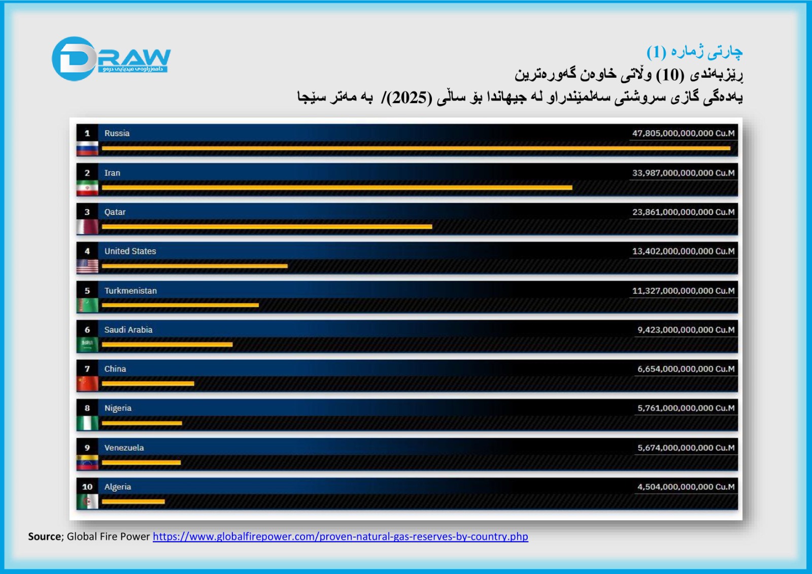 10. Global Fire power, Proven Natural Gas Reserves by Country (2025);