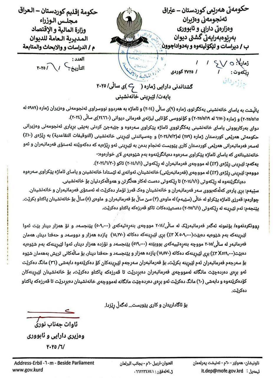 لەم ڕۆژانە لە میدیاکانەوە بابەتی لێبڕینی خانەنشینی بە بڕی (3%)ی موچەی فەرمانبەرانی هەرێم بۆ هەموو ساڵەکانی دوای (1/ 1/ 2014) وروژێنرا، گوایا لەسەر داوای حکومەتی فیدڕاڵییە، دواتریش «نوسراوێکی وەزارەتی دارایی»ـی هەرێمم بەدەست گەیشت کە رێنمایی ئەم لێبڕینەیە و لەخوارەوە وێنەیەکی دادەنێم.