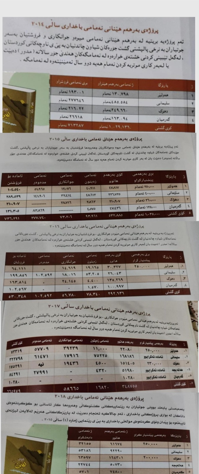 -    ساڵی 2015؛ 736 هەزار و 291 باخداری.