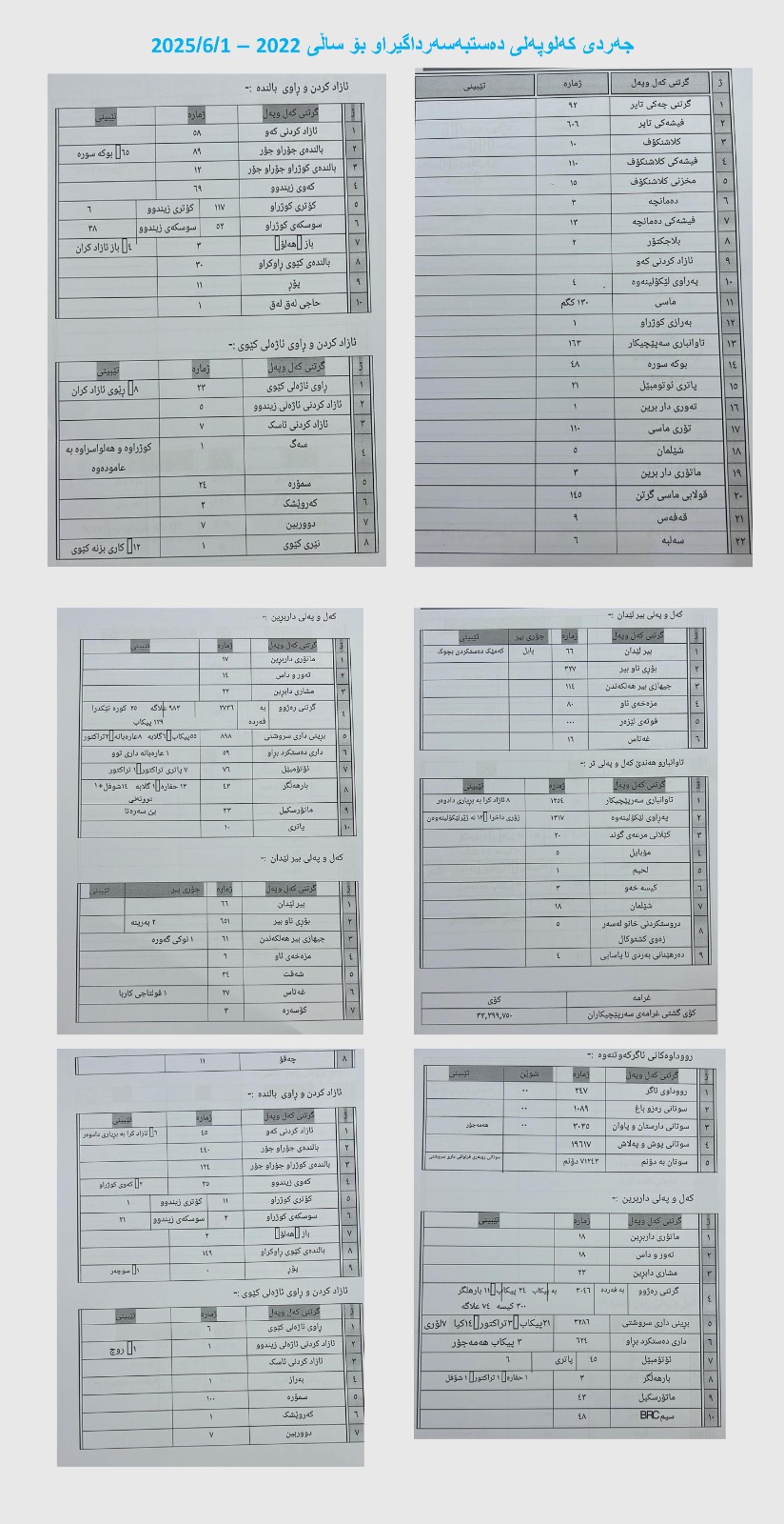 پاشکۆی ژمارە 1: لیستی ئاژەڵی کێوییەکانە کە ڕاوکردنیان قەدەغەیە و بری سزاکانیان لە کاتی ڕاوکردنیان بەرامبەریان دیاریکراوە.