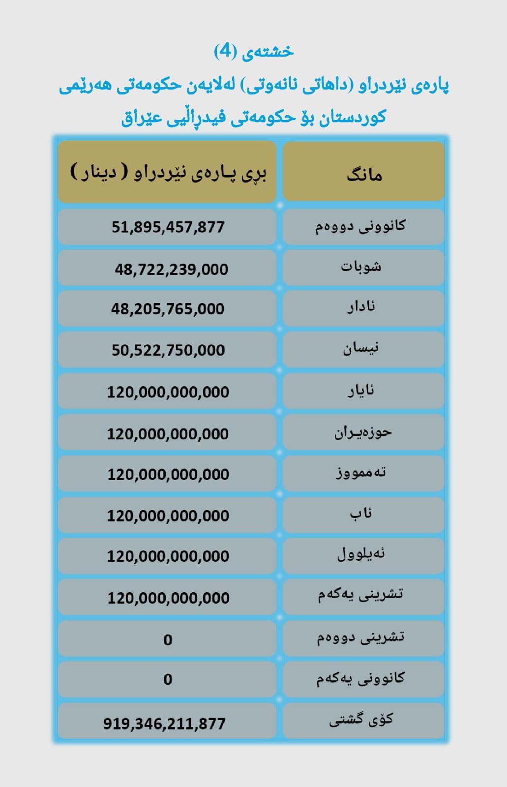 وردەکاریی پارەی نێردراو لەلایەن حکومەتی فیدڕاڵیی عێراقەوە بۆ حکومەتی هەرێمی کوردستان لە ساڵی 2025