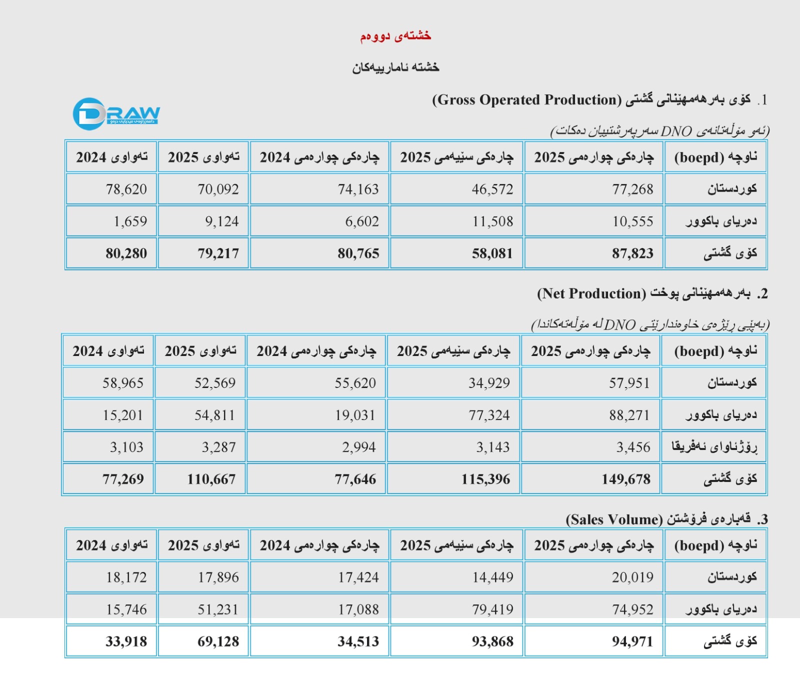 • کوردستان: ٥٧,٩٥١ boepd (لە ٣٤,٩٢٩ـەوە زیادی کردووە).