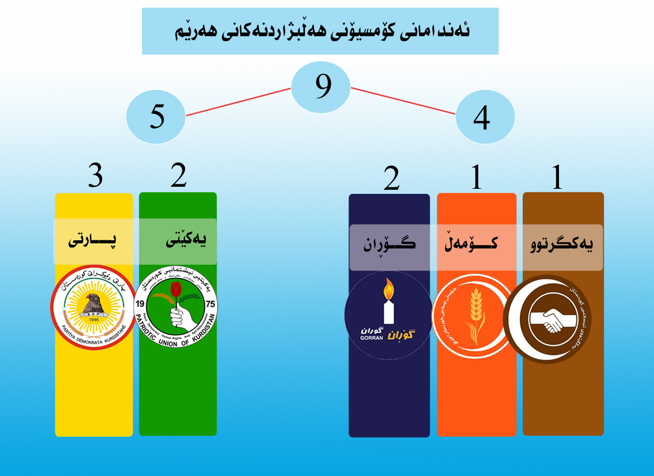 بزوتنەوەی گۆڕان لە كۆمسیۆنی باڵای هەڵبژادن و ڕاپرسی هەرێمی كوردستان 2 كۆمسیار و 3 بەڕێوەبەری گشتیی و 8 بەڕێوەبەری بەش و 12 بەرپرسی هۆبەی هەیە، سەرۆكی فەرمانگەی كۆمسیۆنی هەڵبژاردنەكان، یەكێكە لە كۆمسیارەكانی بزوتنەوەی گۆڕان، كە شارەزایانی بواری هەڵبژاردن گرنگی پێگە و هەستیاری ئەم پۆستە لەناو كۆمسیۆندا بەپۆست و پێگەی سەرۆكی حكومەت وەسفدەكەن لەناو ئەنجومەنی وەزیراندا، ئەمەش بەو مانایەی سەرۆكی فەرمانگەی هەڵبژاردن سەرۆكی دەسەڵاتی جێبەجێكردنە لەناو كۆمسیۆندا.