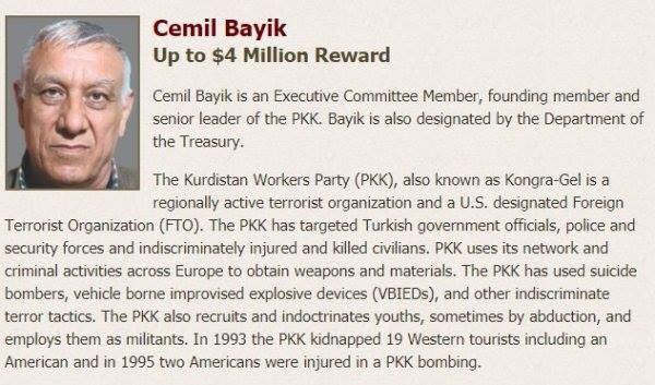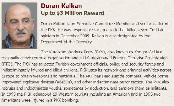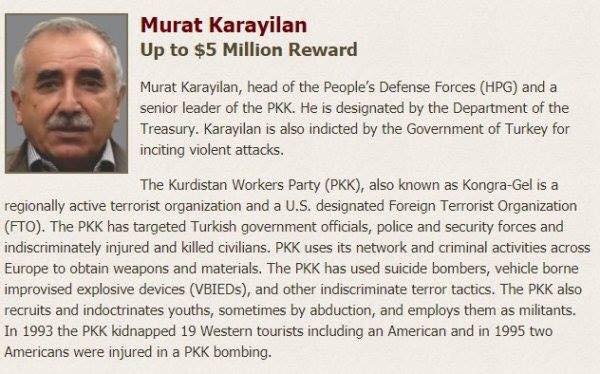 باڵیۆزخانەكە دەڵێت:" ئەمریكا 5 ملیۆن دۆلاری بەرامبەر بە زانیاری بۆ دەستگیركردنی موراد قەرەیلان و 4 ملیۆن دۆلار بۆ جەمیل بایك و 3 ملیۆن دۆلاری بۆ دوران كاڵكان دیاریكردووە".
