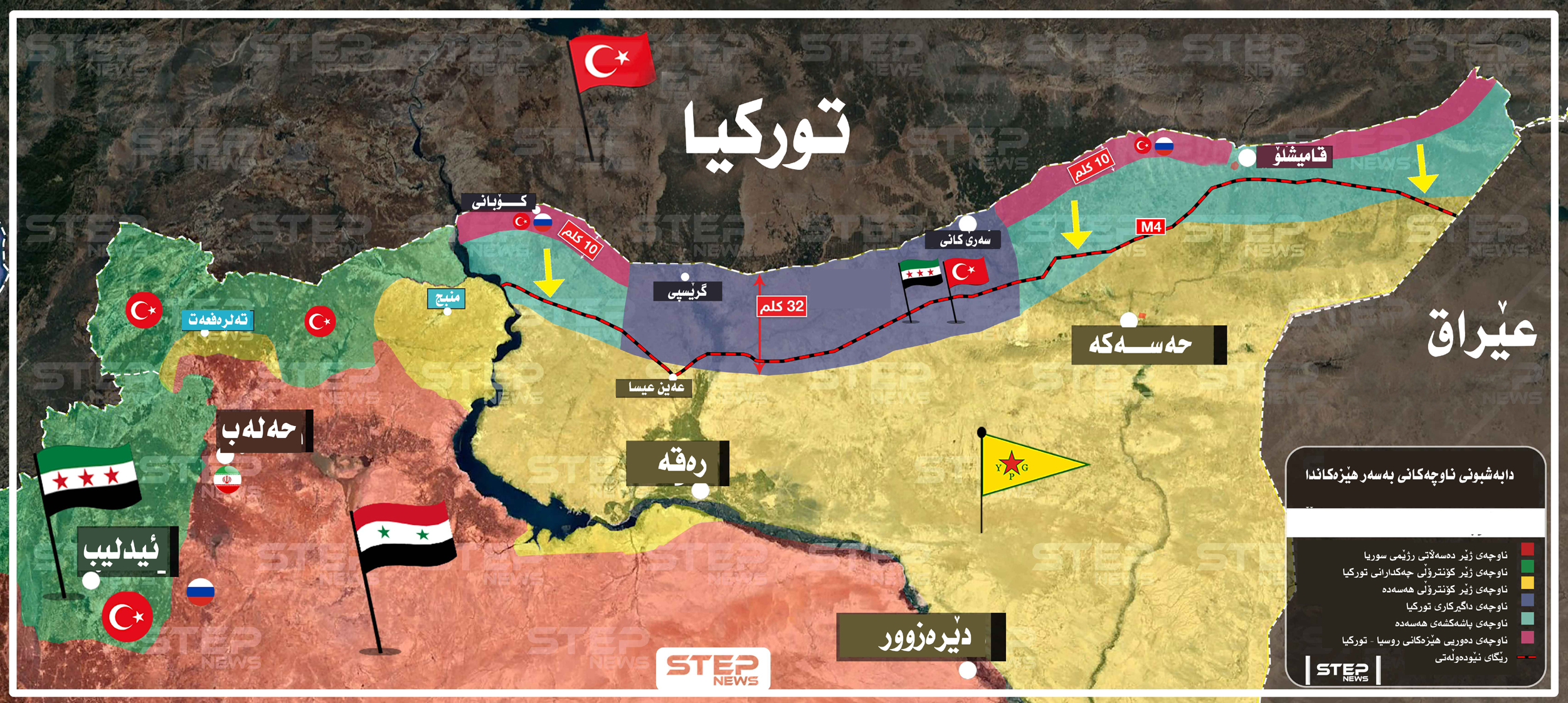 • پلانی توركیا بۆ ئێستا داگیركردنی سنوری نێوان شاری سەرێكانیو گرێ سپی- یە، كە درێژییەكەی 120 - 100 كیلۆمەترە، ئەویش دوای كشانەوەی هێزەكانی ئەمریكا لەم ناوچەیە، لە هەنگاو و پلانی یەكەمدا توركیا ئەم دوو ناوچەیەی داگیركرد، بەمە توركیا لەلایەك رێگای نێوان كۆبانێو جەزیرە دەبڕێت، لەلایەكی تر بەپێی پلانەكە توركیا خەڵكی عەرەبی سوننە لەو ناوچەیە نیشتەجێ دەكات، كە ژمارەیان نزیكەی (2 ملیۆن) كەسەو لە كەمپەكانی توركیا نیشتەجێن.