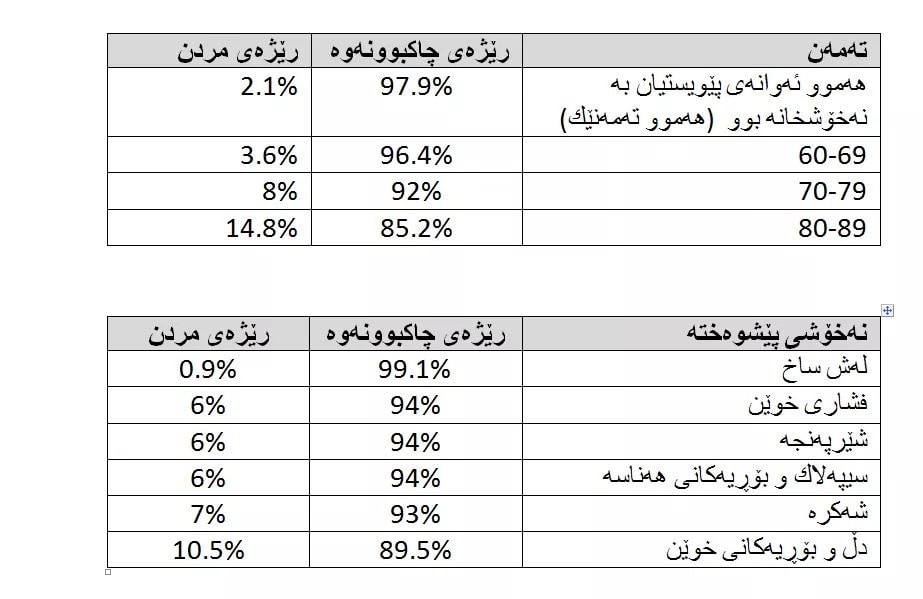 رێژەی چاكبوونەوە