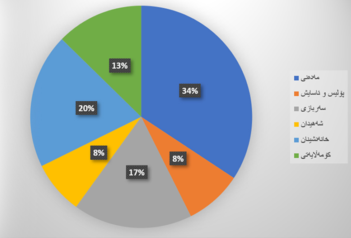 گەر بڕوانیە ڕێژەی سەدی فەرمانبەرانی نێو فەرمانگەكانیش بەم شێوەیە دەبێت: